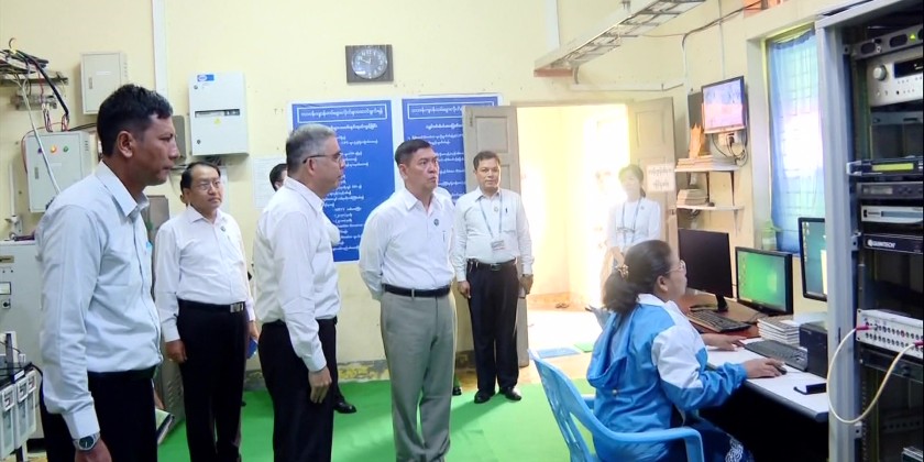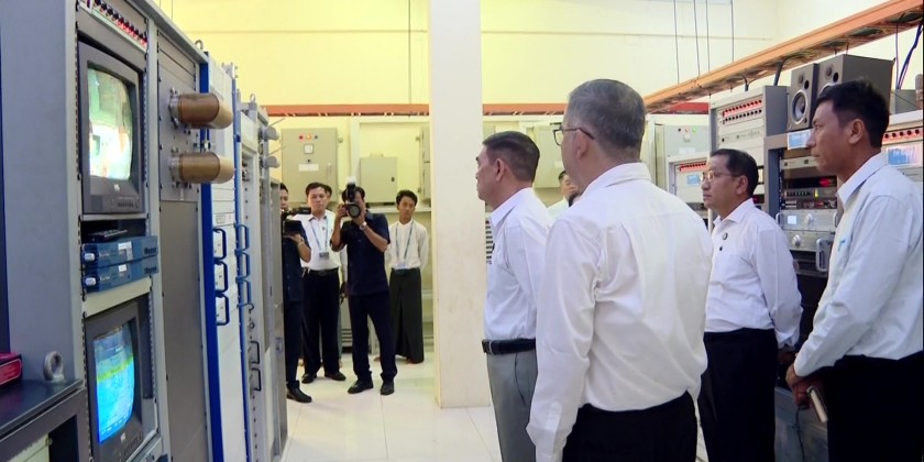 Union Minister for Information U Htein Lin on Monday visited the Pyinmana-Thapyaytaung Retransmission Station. During his meeting with staff, he instructed them to ensure the public receives real-time updates on the government’s goals, activities, and the new administration’s 100-day plan through various media channels.