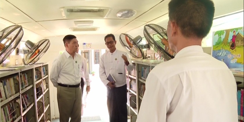 The Union Minister proceeded to the Information and Public Relations Department (IPRD) offices in Pyinmana and Lewe townships and inspected children's reading rooms, Mobile Library Bus program, systematic maintenance of literature and resources intended for public study and Book Club’s discussion circle.