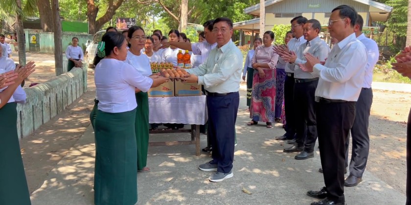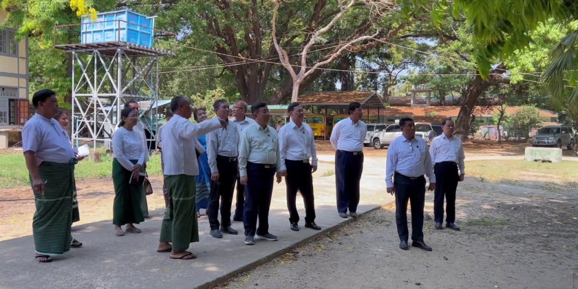 On 11th April, Union Minister for Education Dr. Nyunt Pe accompanied by Deputy Ministers Dr. Zaw Myint and U Nay Myo Hlaing made inspections at earthquake effected No.3, No.5, No.2 Basic Eduation High Schools in Pyinmana Township and No.1 Basic Education High School (Kyauk Chat).