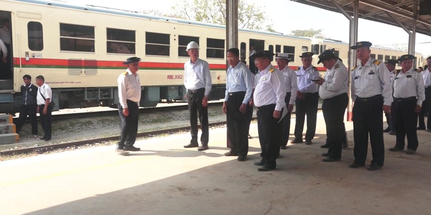 At Myit Nge Station, the Union Minister and party reviewed measures to ensure the speedy operation of RBE trains, reconstruction of rail stations, bridge sustainability and construction of new bridges. They then inspected bridge construction works between Belin and Kyaukse stations.