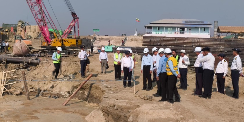 At Kyaukse Station, they examined the designated construction site for a reinforced concrete bridge and the construction of Bridge No. 739 between Kyaukse and MinSu stations. The Union Minister instructed for adherence to standards, timely completion and workplace safety. They later oversaw ongoing station construction works at Thapyay Taung Station.