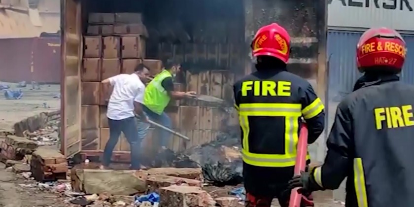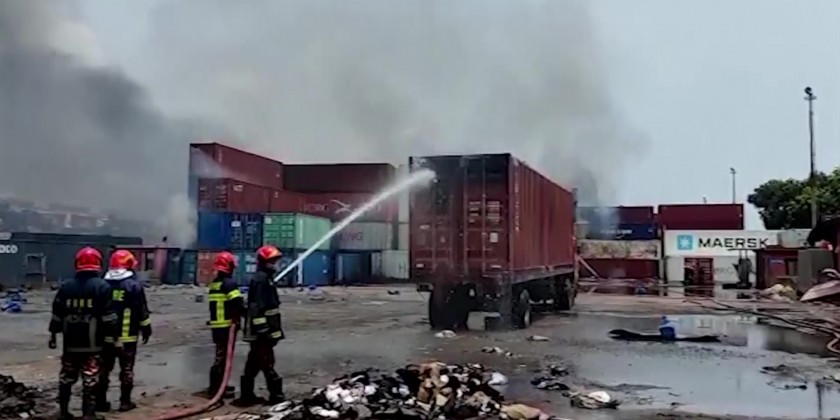 The fire at the BM Inland Container Depot, a Dutch-Bangladeshi joint venture, broke out around midnight Saturday following explosions in a container full of chemicals.