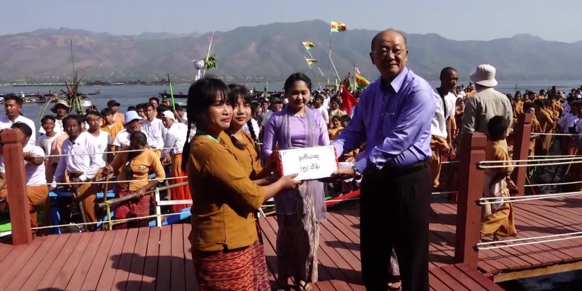 At the prize awarding ceremony, the boat race teams who received the consolation prize, second prize and first prize were awarded the prizes by the Deputy Ministers, Minister Counsellor of the Chinese Embassy in Myanmar, Shan State Chief Minister, Union Ministers and SAC members.After that, the SAC members, Union Ministers, Chief Minister, Deputy Ministers, State Ministers and officials paid homage to the Inle Phaungdaw-U Buddha Image and offered the gold robe and cash donations.