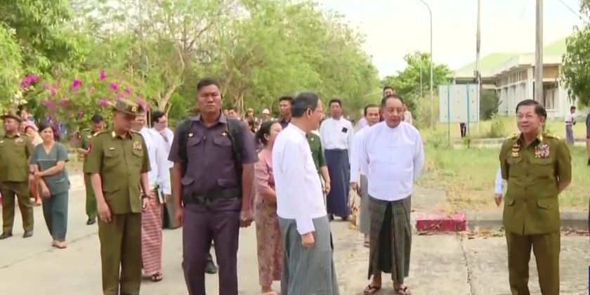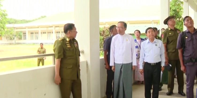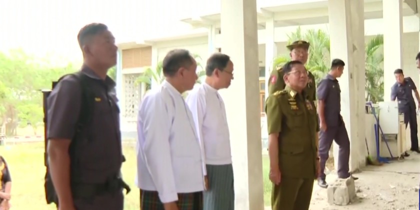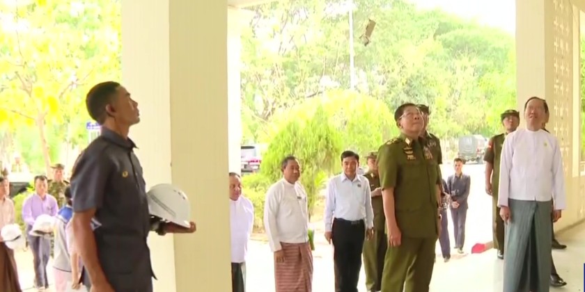 The Chairman of the State Administration Council, Prime Minister Senior General Min Aung Hlaing, along with Council Joint Secretary, General Ye Win Oo, and members, visited the 300-bed Nay Pyi Taw General Hospital in the evening on April 8 to inspect the damage caused by the recent Mandalay earthquake to the medical facilities and staff housing.