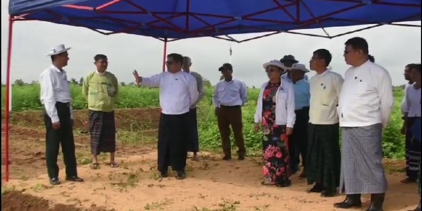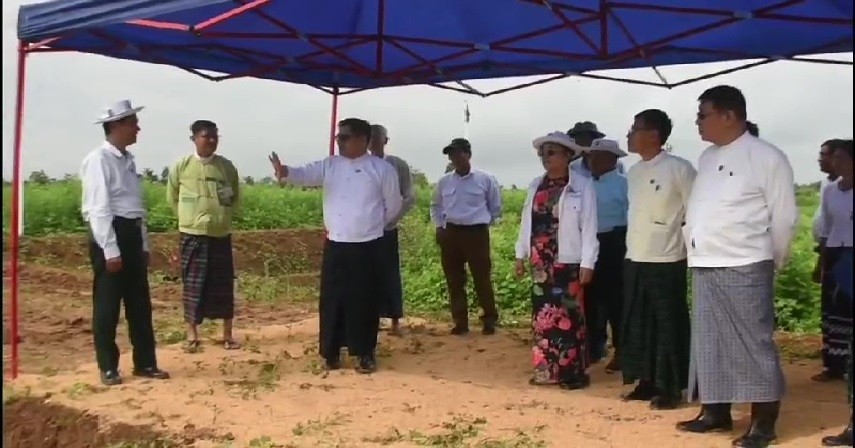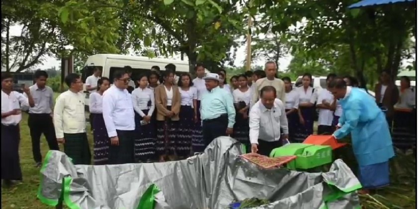 Kachin State Chief Minister U Khet Htein Nan and officials attended a demonstration of using natural green manure of Sunn Hemp held at the Agriculture and Livestock Institute in Pammatee ward of Myitkyina Township in the morning on 20th June.