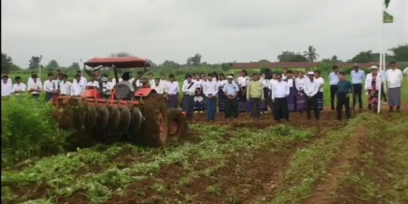 First, the Kachin State Department of Agriculture Director U Htay Lwin clarified the benefits gained by using green manure, alternative fertilizer in such a time of agricultural inputs in High price and cost effectiveness and the Chief Minister and officials, students from Agriculture and Livestock Institute observed ploughing 17 acres of green manure (Sunn Hemp).