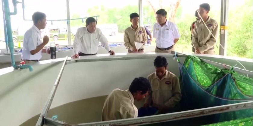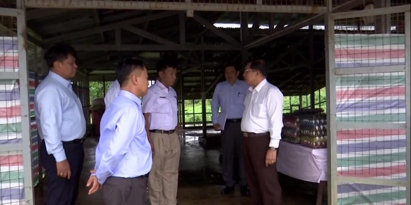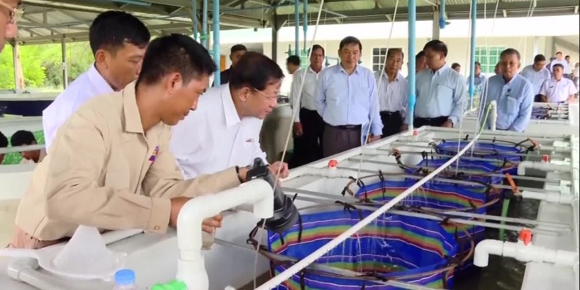 Then, they viewed the fish hatchery and breeding fish fingerlings, gave necessary instruction on the reports of the responsible officials.Then, the SAC Chairman Prime Minister inspected duck breeding in Thilawa multipurpose agriculture and livestock farming zone and fish farms and gave necessary instruction.