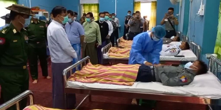 The Chief Minister and party later encouraged the vaccination of Myancopharm booster dose to the sellers from MyoMa Market, and instructed to follow the COVID-19 preventive guidelines. He also urged officials to make close supervisory for proper flow of water and sanitation system in the market. The Chief Minister and party later arrived at Clock Tower Park, and urged officials to draft the landscaping design for upgrading of the park.