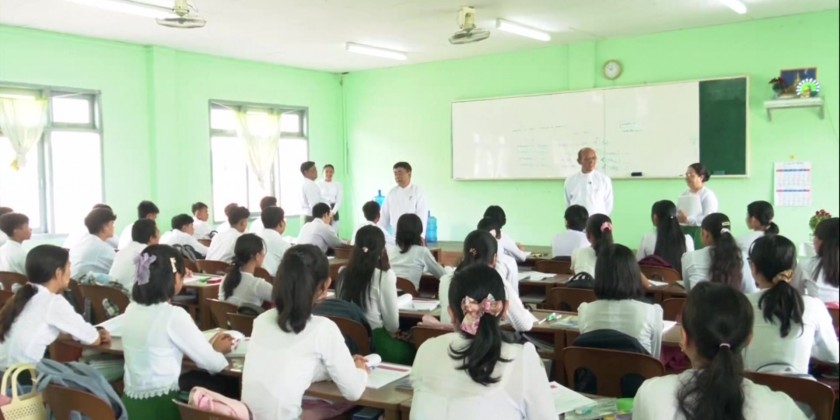 Union Minister for Education Dr. Nyunt Pe together with Deputy Minister Dr. Moe Zaw Tun and Senior officials inspected the basic education schools in Nay Pyi Taw and encouraged the students studying peacefully.