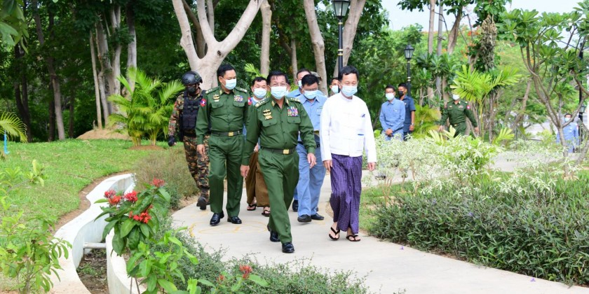 The Senior General and members of the Council inspected Kanpat road expansion site in Mingalar Kantaw Park near Thabyaykone Roundabout in Zabuthiri Township, heard reports and inspected the sites in the Park.