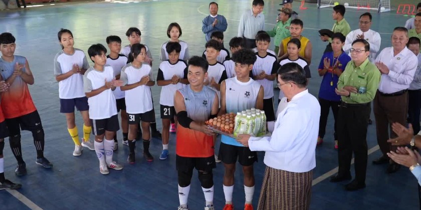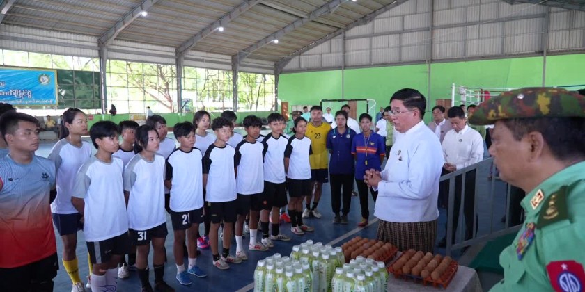 Magway Region Chief Minister U Tint Lwin visited the region sports grounds to encourage futsal athletes from Magway Region, who are conducting camping training at the region futsal court in preparation for representing the region in the upcoming Fifth National Sports Festival in Nay Pyi Taw.