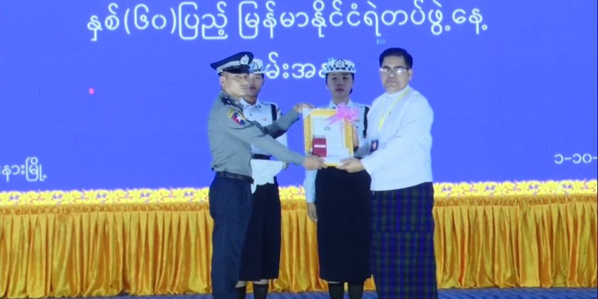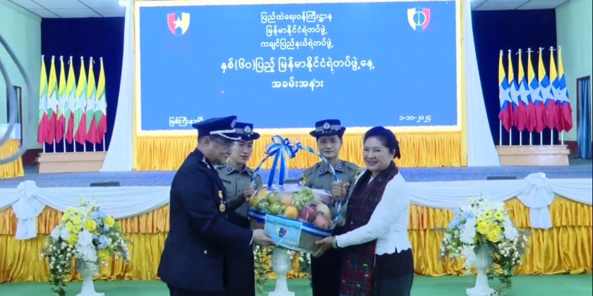 Then, the state chief minister, the deputy commander of the Northern Command, the state security and border affairs minister presented the outstanding police members. The Kachin State Police Major presented gifts to the State Administration Council member marking the 60th anniversary of Myanmar Police Force Day.