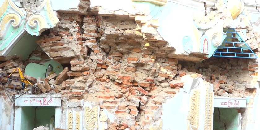 Similarly, in the evening of April 21, the Chief Minister, the Lieutenant General, and officials visited the heavily damaged Swan Oo Ponnya Shin Pagoda on Sagaing Hill. They consulted on religious matters with Sitagu Sayadawgyi and Dhamma Duta Sayadaw Ashin Hsekinda and inspected both the pagoda and associated religious buildings that were damaged by the earthquake.