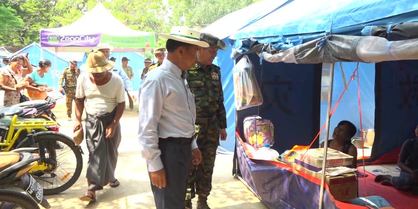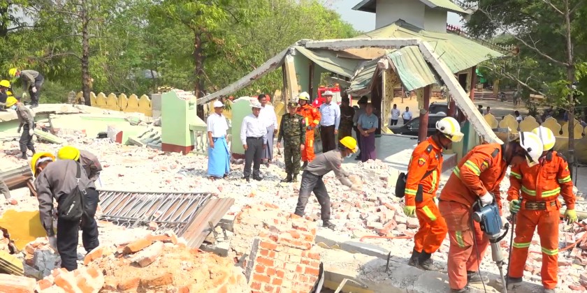 After that, the Chief Minister, the Lieutenant General, and officials visited the Ma-Shi-Kha-Na Pagoda and Maha Ceti Pagoda in Sagaing, both of which suffered damage and collapse due to the earthquake. They observed the ongoing debris clearance efforts, which involved military personnel, Myanmar police force members, firefighters, and members of civil society organizations.