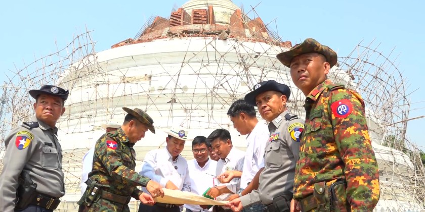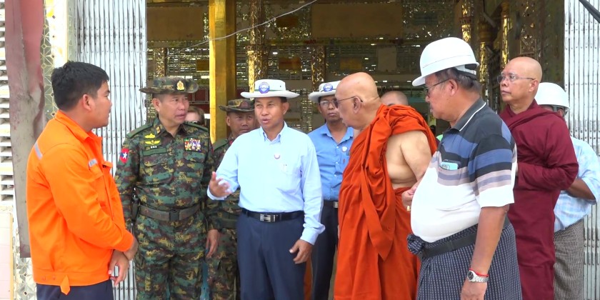 Sagaing Region Chief Minister U Myat Kyaw, Lt-Gen. Thet Pon from the Office of the Commander-in-Chief (Army), and officials arrived at the Laykyun Man Aung Pagoda in Sagaing on April 22. They consulted on religious matters with the Dhamma Duta Sayadaw Ashin Hsekinda , before jointly inspecting the pagoda, which was damaged in the Mandalay earthquake. They coordinated necessary actions with responsible personnel to quickly clear debris and begin restoration of the damaged pagoda.