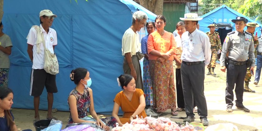 Next, the group visited the Saku-Hmaw earthquake relief camp, where they provided food supplies and other necessities to the affected people. They personally spoke with the victims, offering words of encouragement and support.
