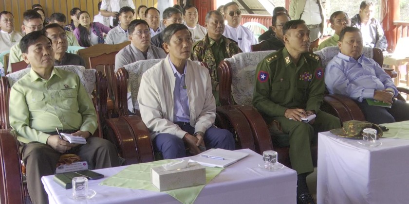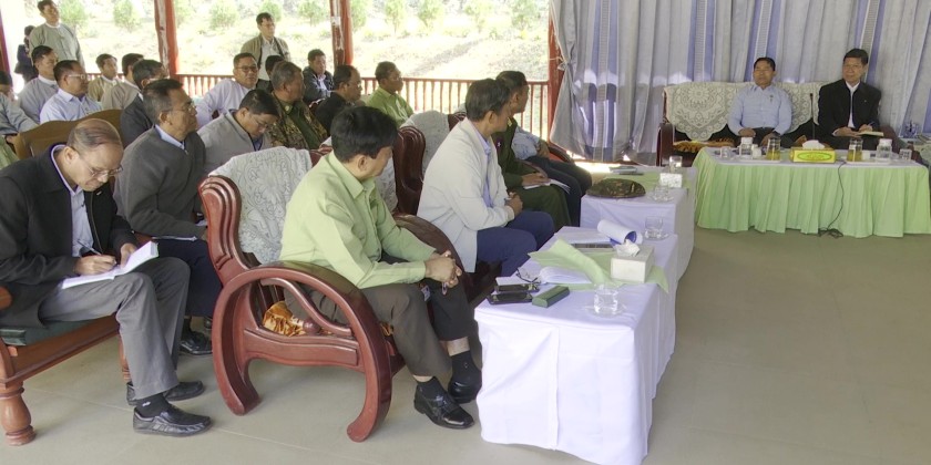 Union Minister for Agriculture, Livestock, and Irrigation U Min Naung, along with Mandalay Region Chief Minister U Myo Aung and members of the region government, met with the leaders and officials of the Pyin Oo Lwin Coffee Project Zone Supervision Committee at the Pyin Oo Lwin Coffee Garden briefing hall on March 9.