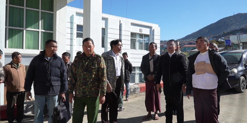During the inspection, Security and Border Affairs Minister Colonel Khin Maung Htway, Road Transport Minister U Nay Lin Aung, and officials responsible for state and district level departments explained the construction status of the state government office and the arrangements made for the MSME exhibition to be held in commemoration of the 78th Chin National Day on February 20, 2026.