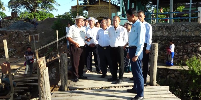 The Deputy Minister for Cooperatives and Rural Development U Myint Soe, on May 20, visited Zeyathiri Township to inspect the construction of the Kyitaung-Thayaywan I-Beam reinforced concrete bridge, which is 550 feet long and being built by the bridge construction team under the Department of Rural Road Development.