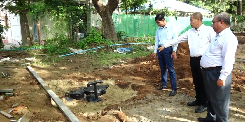 Following this, the Deputy Minister proceeded to inspect the ongoing construction of officers and staff housing at Myauk Lwat Kone , under the Department of Rural Development in Pyinmana Township. He examined the layout of rooms for staff, the provision of water supply, and the construction of eight-unit sanitary facilities. He instructed that the work must be completed within the third week of May to properly accommodate staff families, ensure the area does not flood during the rainy season, and guarantee the security of roofing and shelter structures.