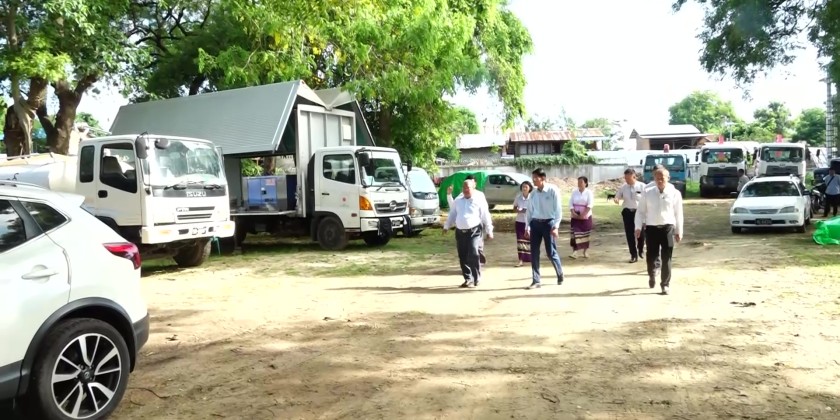 In Zabuthiri Township, he also inspected the land plot of the Regional Office of the Department of Rural Road Development, where temporary housing units for officers and staff are being set up, as well as the installation of prefabricated modular houses. At the headquarters of the Department of Rural Development, he inspected the setup of fabricated modular houses.