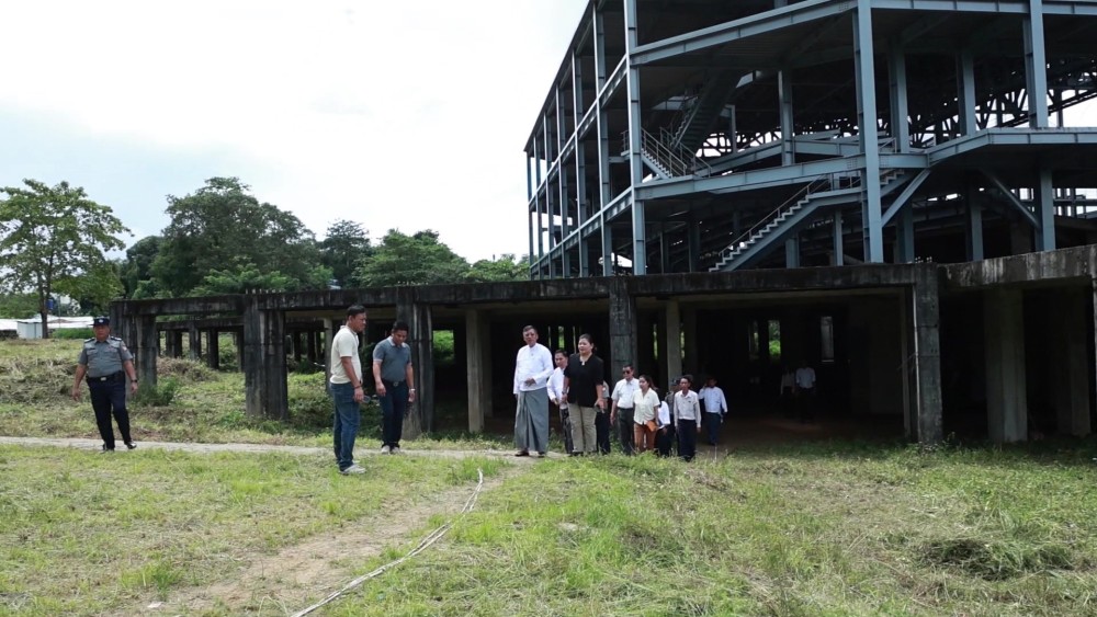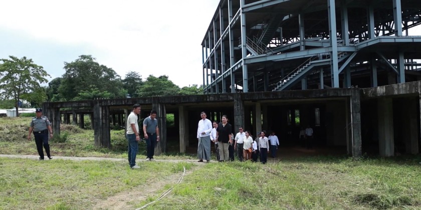 Union Minister for Religious Affairs and Culture U Tin Oo Lwin visited the Myanmar Art Center (Yangon) on Min Dhamma Road, Insein Township, Yangon Region, in the morning on Sunday to inspect the construction progress. The internationally-standard Myanmar Art Center (Yangon) is a steel structure building spanning 7.41 acres (350 feet long x 250 feet wide), with two underground floors and three above-ground floors.