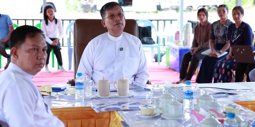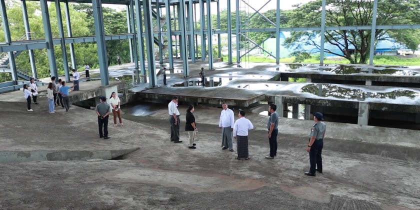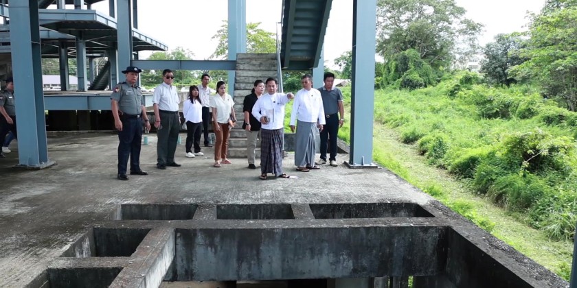 First, at the construction briefing hall, Managing Director of Myanmar Land and Development Limited, U Thant Zin, presented a PowerPoint overview of the progress of seven construction projects being implemented with supplementary budget funds for the 2024-2025 fiscal year. Subsequently, Project Director Daw Yu Yu Naing explained the completion status of the projects.