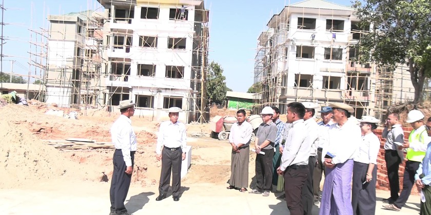 First, Nay Pyi Taw Council Chairman inspected the construction status of six-unit, four-story reinforced concrete buildings for staff housing (2-bedroom) being built using the Nay Pyi Taw Council's reserve fund for the 2024-2025 fiscal year in the Nyana Theidi ward, Zabuthiri Township.