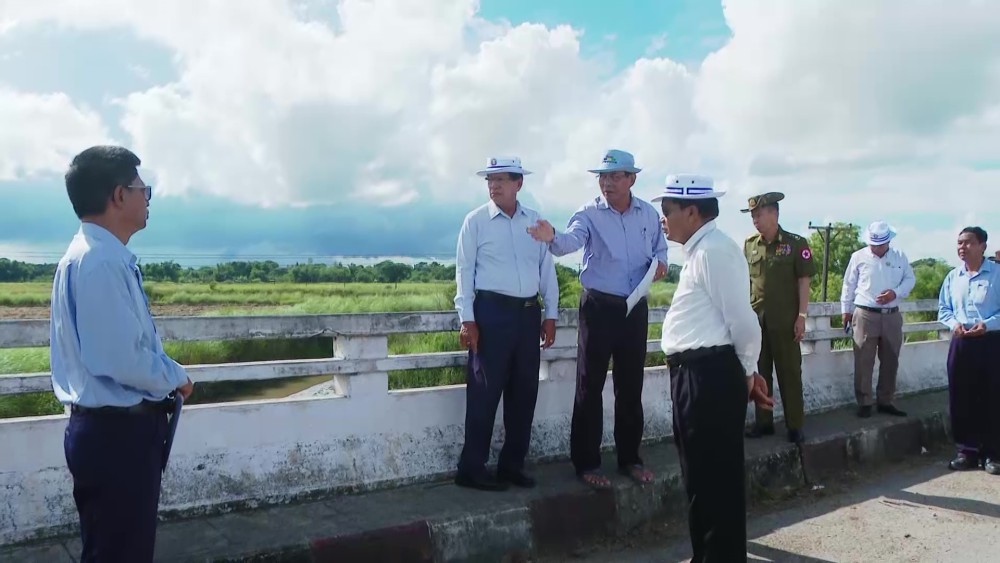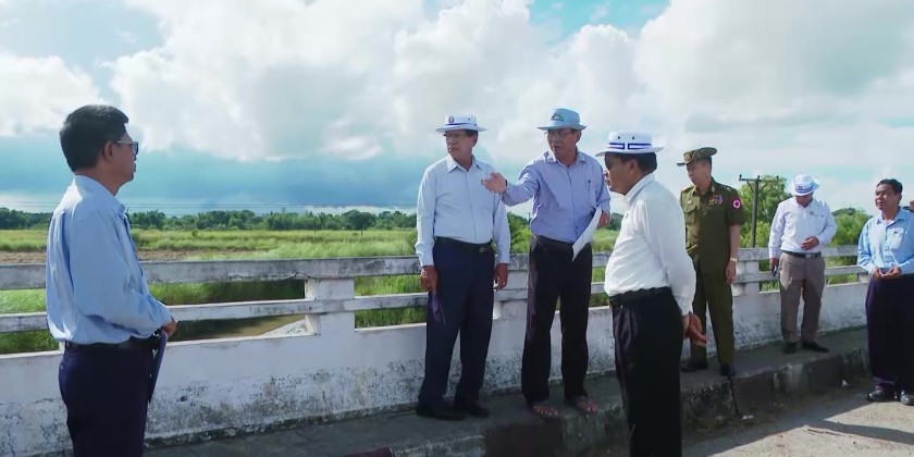 Subsequently, Chief Minister and officials inspected the construction progress of the 252-foot-long Nanyaw Creek Bridge on Thone Gwa Township Bypass Road in Padathaing Village Tract, as well as the 220-foot-long Padathaing-Nanyaw Bridge. After officials briefed them on the current status of the projects, the Chief Minister provided further instructions.