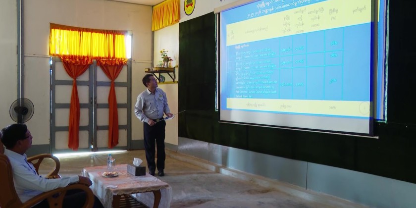 Later, at the briefing hall of the Thone Gwa Township Bypass Road construction project in Thone Gwa Township, Director of the Region Road Department, presented a PowerPoint overview of the work completed by the Ministry of Construction’s Bridge Department, Construction Team 3, and Special Bridge Team 11, as well as the progress of the Thone Gwa Township Bypass Road construction by the Construction Team 4 and Special Road Team 14. The Chief Minister instructed that the projects be carried out neatly, efficiently, and expedited to ensure early completion within the fiscal year.