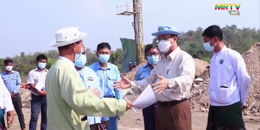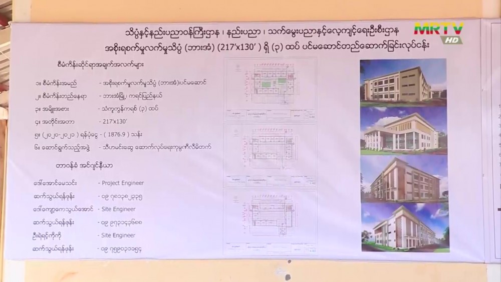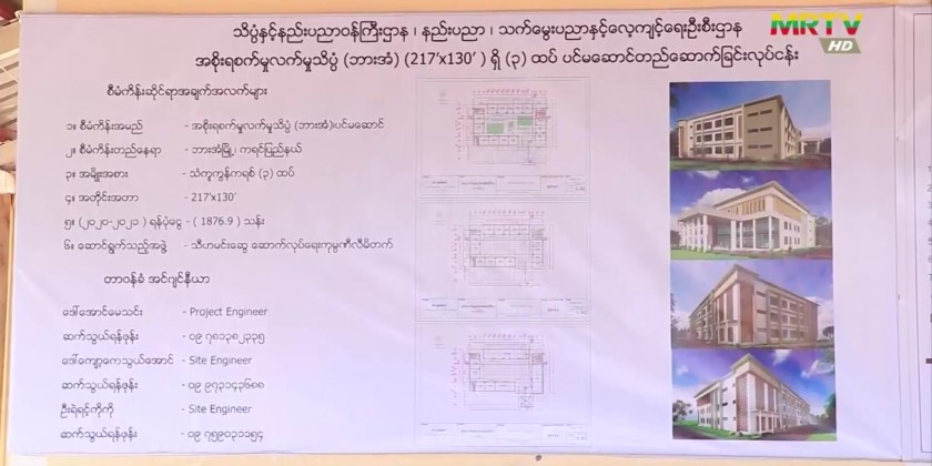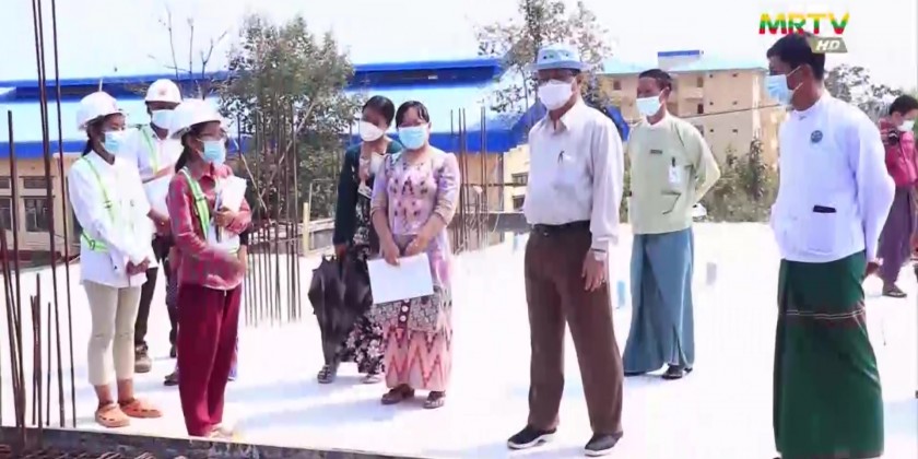 The chief minister and party inspected the construction of main building of the college which is 217 feet long and 310 feet wide steel-reinforced three storey-building implementing by Thiha MinSwe construction company, the principal of Government Technical High School Daw Nan Moe Moe Kyi and officials clarified regarding with the construction works and the chief minister gave necessary instruction and viewed around the construction site.