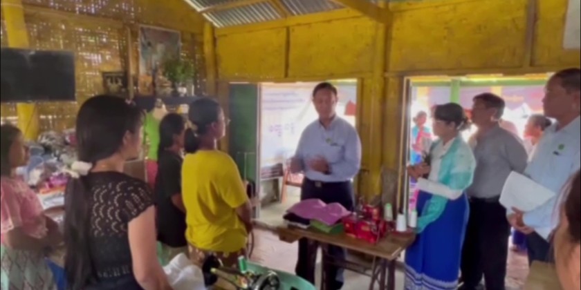 They also visited Laintaw Village, where five trainees who had completed basic sewing machine operation training and had received business equipment were now engaged in sewing-related livelihoods. The Union Minister encouraged them and discussed further support with the relevant officials.