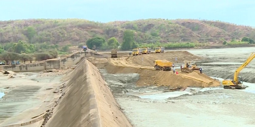 After that, the SAC Vice Chairman, Deputy Prime Minister, and officials observed the water loss through the damaged diversion weir and ongoing temporary repairs. They also inspected the use of machinery to expedite water distribution through the left and right canals to the irrigation-dependent farmlands, issuing further directives as needed.
