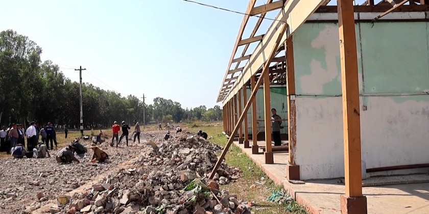 Next, they arrived at Namkot Sub High School, where they reviewed the completion of a single-story, four-unit staff housing building for teachers, the renovation of classrooms damaged by flooding, and the upgrading of a football field within the compound of High School No (7). The Chief Minister directed officials to ensure that all work meets specified standards and is of high quality.
