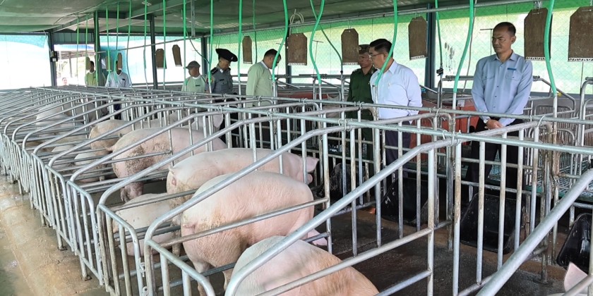 The Chief Minister and officials first visited the model pig farming site, which was established to support the development of the livestock sector in the state and to serve as a demonstration and training center for livestock entrepreneurs. The Head of the State Livestock Breeding and Veterinary Department gave a briefing on the implementation and operations of the facility.