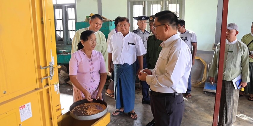 The Chief Minister provided guidance on the operations of the model pig farm. He also inspected the condition of experimental paddy fields of Aung Naing Toe paddy strain cultivated by a local farmer, U Palar Ral, from Yay Ni Kan Village, and visited the branch office for apiculture and the base queen bee breeding center to check on the condition of the bee colonies. Additionally, he visited the Treasure Corn crop drying factory to inspect its operations and provided necessary instructions.