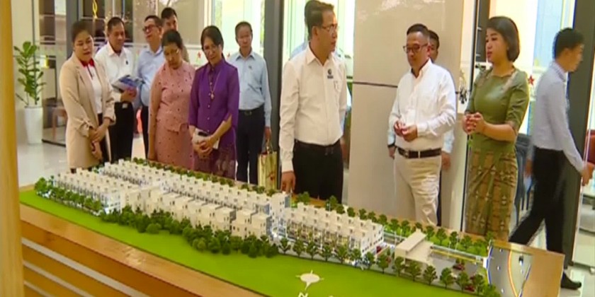 In the evening, the Union Minister and party arrived at the Mingalar (Mandalay) Urban Housing Project and looked round the housing estate, condo apartments, rental housing under construction, integration with temporary terminal and housing and shop stalls, night market in the housing area and the three days trade fair organized by Mandalay Chamber of Commerce and Industries.