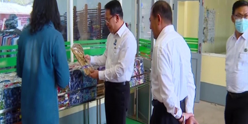 First, the Union Minister and party arrived at Garment Factory (PyinOo Lwin) of Myanmar Economic Holding Limited and observed the manufacturing and selling SMART branded shirts and bought some.The factory was established in 2015 with the installation of high quality machines and equipments made in Korea and imported colorful fabrics, manufactured Export Quality products, selling them in domestic market including the super markets and malls in retail and wholesale system and it’s a successful industry gaining profits annually.