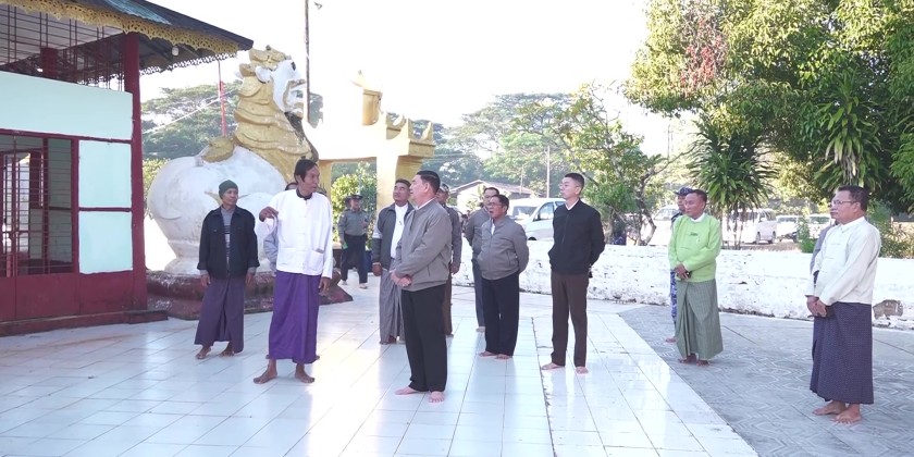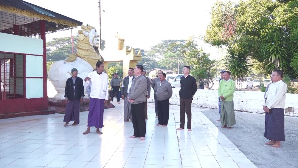 First, the Chief Minister and officials visited the historic ancient Yan Aung Myin Pagoda in Manaung Township, where they paid homage, offered flowers, oil lamps, and water, and donated cash donations.