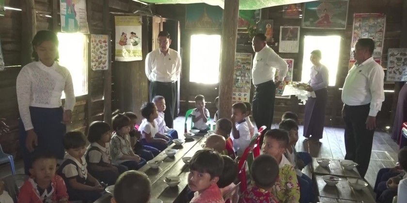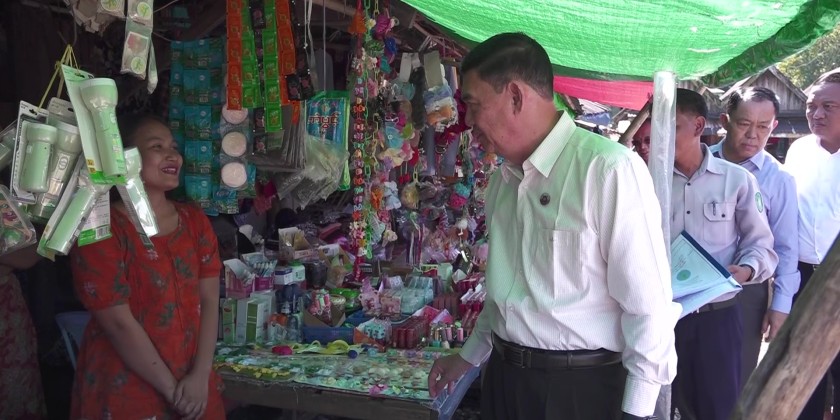 The Chief Minister and officials then visited the Department of Information and Public Relations (Manaung Township Office), the public library, and the Self-Supporting Pre-Primary School in Manaung. They also inspected progress on renovation works for the vegetable and meat market sections inside the Manaung Municipal Market.