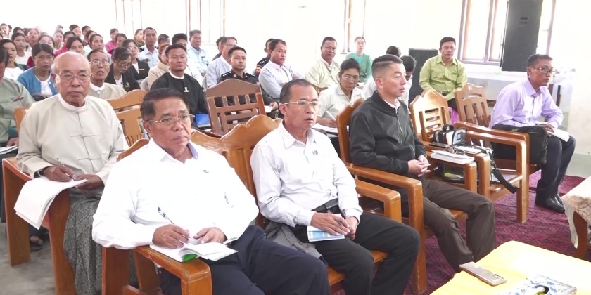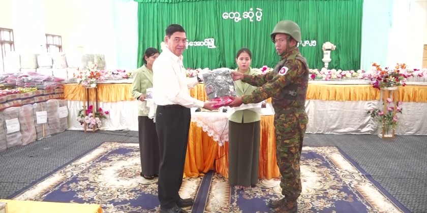 The Chief Minister, state government members, and officials then presented warm clothing and basic food items to township-level departmental staff and security personnel serving in the area. Continuing the session, Chief Minister U Htein Lin responded to the presentations and discussions, stating that literary and knowledge books would be provided for the development of libraries that 100 KVA solar-powered generators would be arranged to ensure 24-hour electricity at the Manaung Township General Hospital, and that solar-powered streetlights would be installed. He emphasized that everyone must collaborate harmoniously for the township’s development.