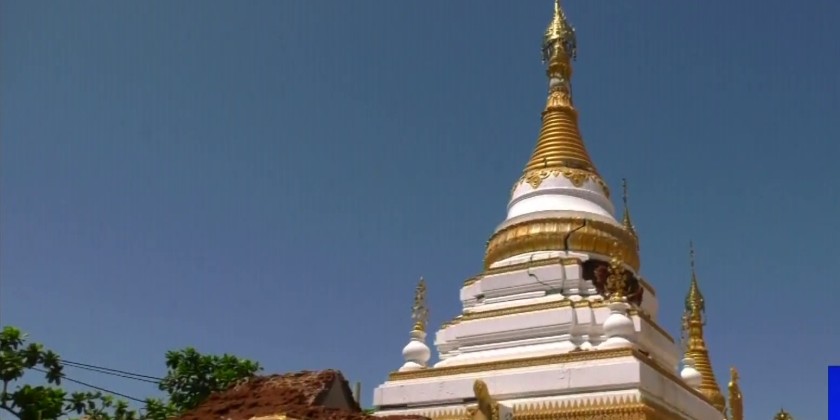 Later, the Prime Minister arrived at Shwe Tha Lyaung Pagoda Hill to inspect the earthquake-damaged Kyauk-Thittar or stone box pagoda. They also paid homage to the Shwe Mote Htaw Pagoda, offering flowers, oil lamps, and water, and made cash donations to the pagoda's board of trustee.