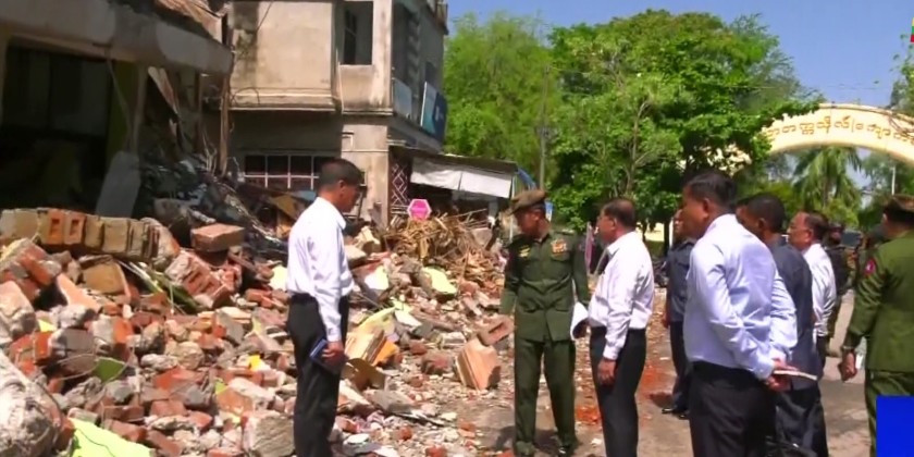 The Prime Minister reviewed photographic records of the damage to the pagoda and inspected the earthquake-affected Dhamma Hall at Shwe Mote Htaw Pagoda. He directed officials to clear the debris and systematically commence reconstruction efforts as soon as possible.