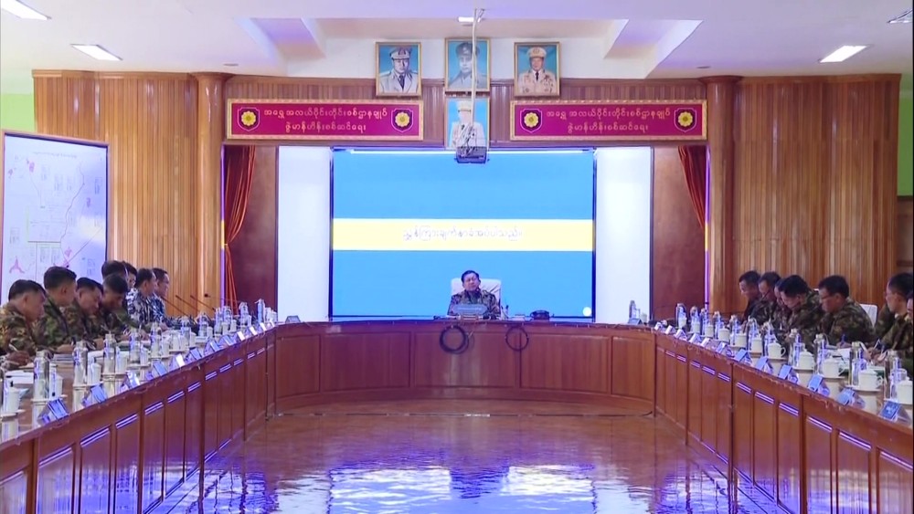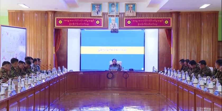 Upon arrival at the command, the Senior General heard a briefing by the Commander, Major General Soe Myat Htut, regarding command-related data and the progress of operational tasks within the region. The Senior General provided necessary guidance in response to the presentation.