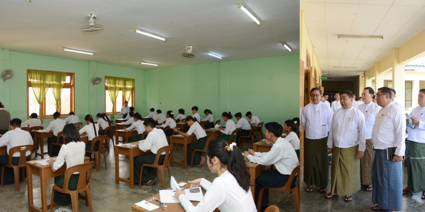 Following this, the Union Minister proceeded to the examination center at No. 13 Basic Education High School in Pobbathiri Township, where he observed and supported students taking their exams peacefully, while also addressing any necessary requirements.