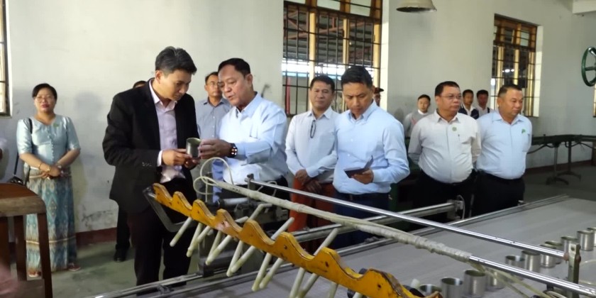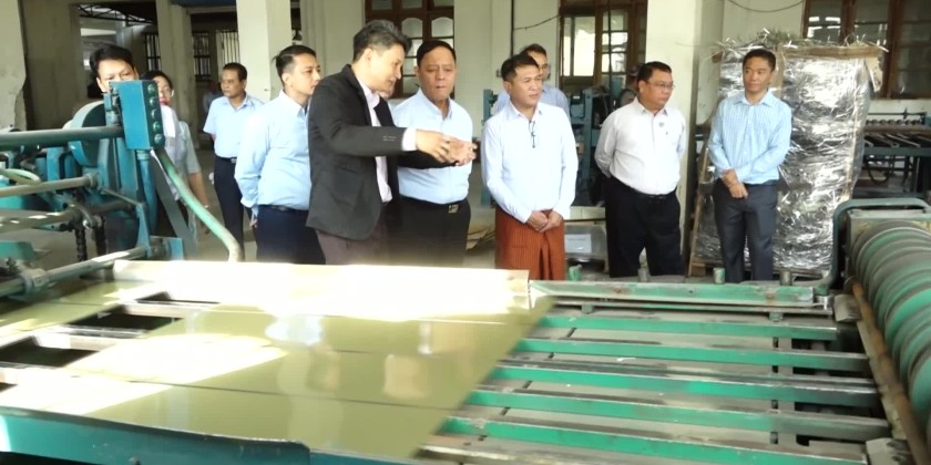 The Union Minister for Cooperatives and Rural Development U Hla Moe, along with the officials, visited the Wei Wang factory in Shwe Lin Pan Industrial Zone in Hlaingthaya Township on 23rd December. The factory produces soy sauce, condensed milk, evaporated milk, and factory of cans for products, as well as the Thiri Sandar garment factory and the general trading cooperative company in Insein Township, which manufactures garments.