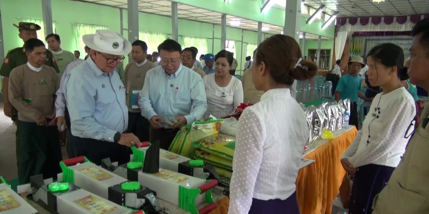Next, the Deputy Minister met with the soybean farmers and urged to expand the oil crops, producing soybean Value Added products, market prospect and technical assistance from the Department of agriculture and fulfilled requirements upon the reports of the soybean farmers. At the meeting, the Deputy Minister and officials also provided oil crop soybean seeds and seeders to the farmers.