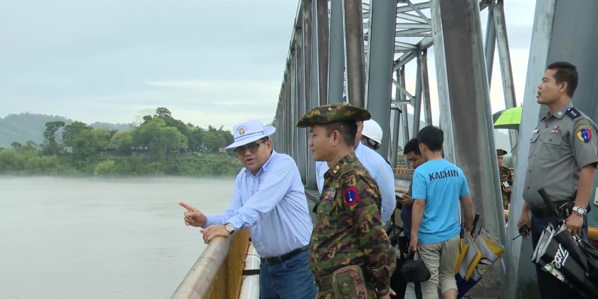 Following that, the Chief Minister, the commander, and officials inspected the water level of the Ayeyarwady River from Balaminhtin Bridge and checked the status of the newly constructed embankment on the Waingmaw Township / Mine Nar side of river bank.
