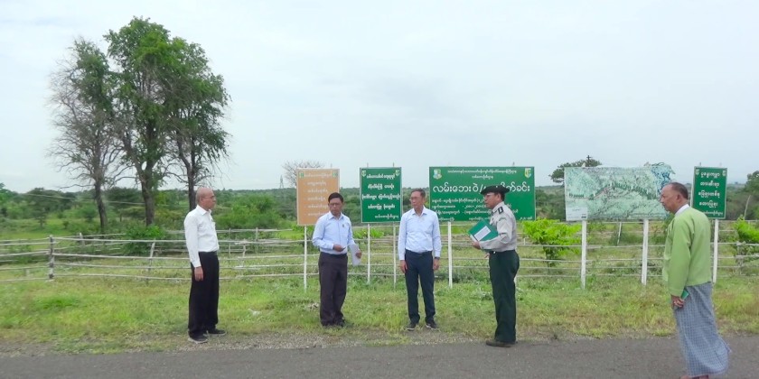 The Union Minister and officials then visited Natkan Oo protected forest area in Yenangyaung Township to inspect the Greening Zone project. They reviewed the thriving condition of the plants and observed preparations underway for the upcoming 2025 monsoon season mass tree-planting event.