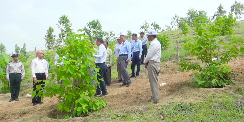 Subsequently, they visited a multi-purpose two-acre plantation near Yargyi Pyin Village in Yenangyaung Township, located at milepost 358/3 along the Kyaukpadaung–Magway Road, which was planted in 2024. The Union Minister emphasized the importance of continued care and maintenance for sustained growth.